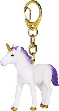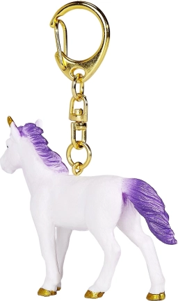 Ovaj stylish MOJO privjesak u obliku bijelog jednoroga s ljubičastom grivom i repom privlači pažnju na prvi pogled. Zahvaljujući metalnom prstenu i karabineru lako ga pričvrstite na ključeve, torbicu ili školski ruksak. Ručno oslikavanje svakom komadu daje originalan izgled i realistične detalje.