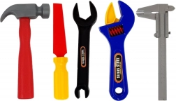 Set sadrži alate izrađene od sigurnog i izdržljivog plastike u živim bojama koji imitiraju prave predmete.