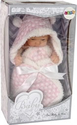 Lutka je odjevena u toplu ružičastu pelenicu s bijelom mašnom. Ima pokretne ruke, što povećava interaktivnost i pruža realističan dojam igre. Izrađena je od atestiranih materijala visoke kvalitete, koji jamče sigurnost i dug vijek trajanja igračke.