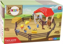 Set uključuje alate potrebne za svakodnevno održavanje farme i staje - tricikl, vile, sijeno, pojila i još mnogo toga.