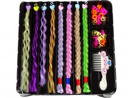 Set također uključuje osam šarenih pletenica, koje donose još veću raznolikost stilskih mogućnosti. Svaka pletenica opremljena je efektnim privjescima koji dodaju sjaj i eleganciju. U kompletu je i češalj, neprocjenjiv alat za izradu stilskih frizura.