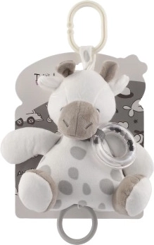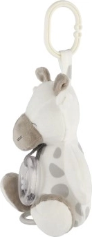 Žirafica je izrađena od mekanih, ugodnih materijala i ima umirujući glazbeni mehanizam koji nakon povlačenja nježno reproducira melodiju. Neutralno sivo-bijelo izvedenje uklapa se u svaku dječju sobu te potiče miran san i osjećaj ugode.
