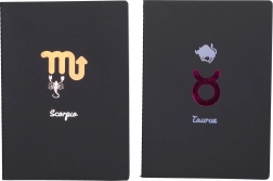 Otkrijte čaroliju ovog stilskog liniranog notesa, savršenog suputnika za svakodnevne zadatke ili zapisivanje vaših misli. Njegov elegantni dizajn uključuje motive svih dvanaest znakova zodijaka, što ga čini jedinstvenim i osebujnim dodatkom.
