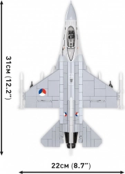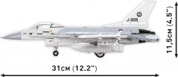 Od 425 građevinskih blokova COBI možete izgraditi ovaj ikonski lovački avion s detaljima u mjerilu 1:48. Model uključuje rakete AIM-9 Sidewinder i AIM-120 AMRAAM, koje su odvojive i prilagodljive. Set također uključuje figuricu pilota s maskom za kisik i kacigom s otiscima nizozemskog zrakoplovstva.
