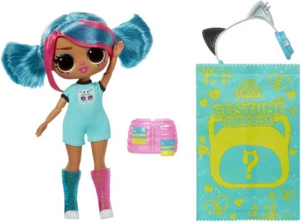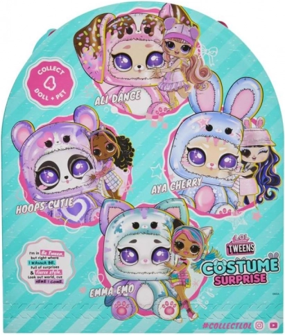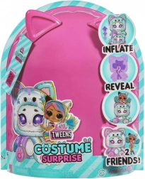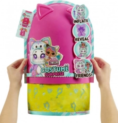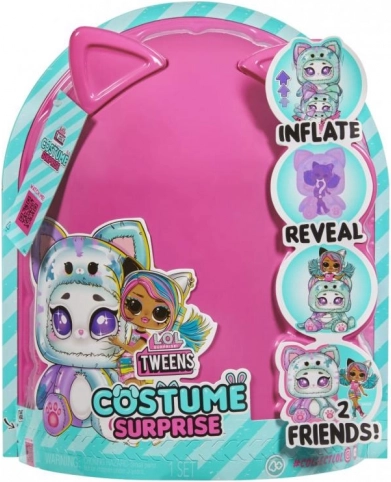 Pripremite se za najveće iznenađenje raspakiravanja s L.O.L. Surprise Tweens Costume. Najprije otvorite zatvarač na dnu pakiranja i uklonite ružičasti omot kako bi se otkrio tajanstveni poklon-papir! Gledajte kako se papir povećava i nakon potpunog napuhavanja razderite ga kako biste otkrili preslatki kostim tirkizne mačkice! Ali to nije kraj iznenađenjima! Podignite plišanu glavu mačke i pronađite nevjerojatnu lutku Emo Emma Tweens unutra!