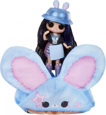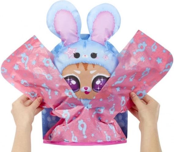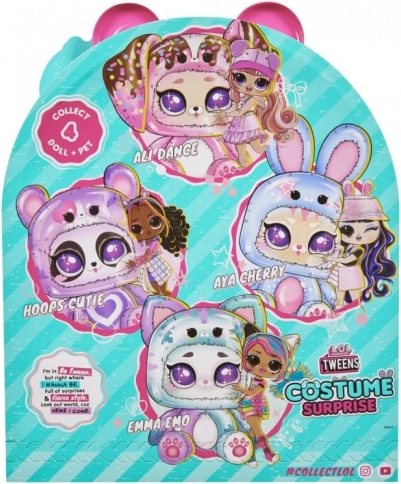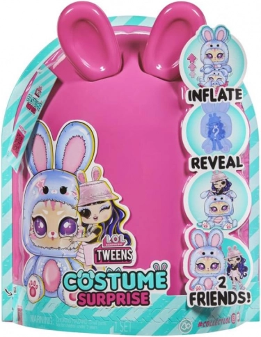 S L.O.L. Surprise Tweens Kostim Savršenstvom stižu nove i uzbudljive avanture. Počnite povlačenjem zatvarača na donjem dijelu pakiranja i uklonite ružičasti pokrov kako biste otkrili tajnovitu papirnatu omotnicu. Promatrajte kako se pakiranje povećava i puni, a kada bude potpuno napuhano, poderite papir i otkrijte čarobni kostim tirkiznog mačića!