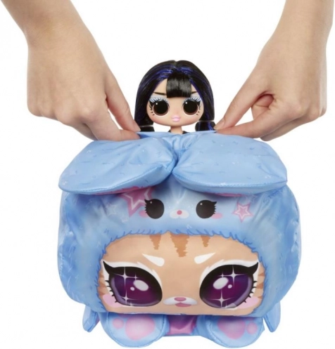 Otkopčajte stražnji dio glave mačića na čičak i otkrijte sjajnu lutku Emo Emmu Tweens skrivenu unutra! Raspakirajte preslatka iznenađenja i odjenite Emo Emmu u modernu odjeću i dodatke, uključujući stilsku suknju, moderne slušalice s mačjim ušima i šarene cipele. Ručice lutke lako se skidaju za jednostavnije odijevanje.