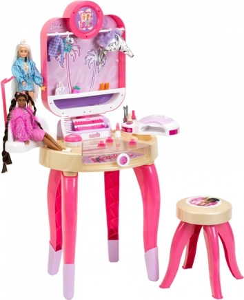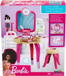 Barbie toaletni stolić donosi djeci autentičan doživljaj kozmetičkog salona. Zahvaljujući okretnom ogledalu sa svjetlima mali stilisti vide se sa svih strana i mogu stvarati savršene frizure. Zatim slijedi razigrana “manikura”: sušilo za nokte s efektima zraka i svjetla daje cijeloj igri realističan štih.