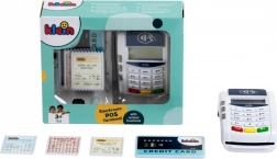 Set terminala sadrži jednu kreditnu karticu s funkcijom beskontaktnog plaćanja i 3 igraće potvrde/računa. Razgovor s kupcima na modernom platnom terminalu uči djecu komunikacijskim vještinama, a rukovanje platnom karticom pomaže razvoju motorike.
