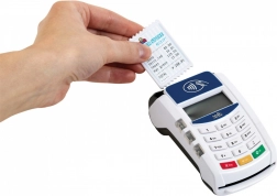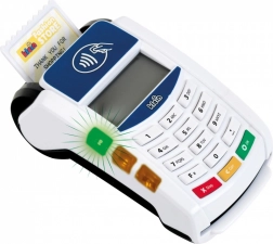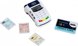 Platni terminal zavaravajuće nalikuje pravom uređaju. Ima funkcionalne tipke i čitač beskontaktnih plaćanja. Tijekom korištenja emitira blago svjetlo i proizvodi zvukove. Tijekom igre dovoljno je unijeti i potvrditi iznos, prisloniti karticu na terminal, unijeti i potvrditi PIN i plaćanje je spremno. Povlačenje priložene platne kartice preko čitača popraćeno je realističnim zvukovima, kao i kod pravog uređaja. Za ispravno igranje potrebne su baterije koje nisu uključene u set.