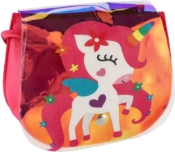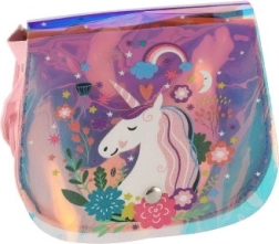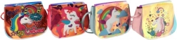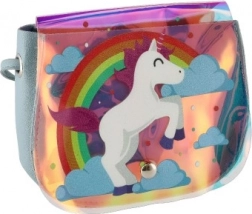 Torbica je ukrašena smirenim motivima jednoroga i duge, čime potiče dječju maštu i razigranost.