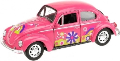 Ovaj detaljni metalni model WELLY VOLKSWAGEN Beetle u mjerilu 1:32 spaja izdržljivu izradu s dojmljivim cvjetnim dizajnom u stilu 60-ih. Zahvaljujući kompaktnoj duljini od 12 cm stane u džep ili torbicu i uljepšava čekanje i putovanja. Mehanizam na potez unatrag osigurava brz start i mnogo dinamične zabave, a otvoriva vrata i pažljivo izrađena unutrašnjost naglašavaju realističan dojam.
