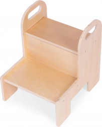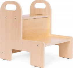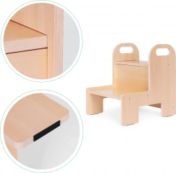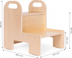 Čvrsta 12 mm šperploča, zaobljeni rubovi i dvije prostrane stepenice pružaju djeci sigurnost pri svakodnevnoj uporabi u kuhinji i kupaonici.