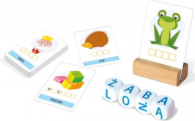 Kocka po kocka. Pisanje je jednostavna edukativna igra za najmlađu djecu koja podržava učenje pisanja i čitanja. Iz seta ŠEST kocaka treba sastaviti nizove od tri, četiri, pet ili šest slova koja opisuju slike prikazane na kartama. Igra potiče djecu na prepoznavanje slova i slaganje riječi od njih. Pomaže razvijati rječnik, vježbati koncentraciju i brzo razmišljanje.