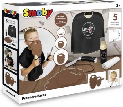Brijački set Moja prva brada savršen je za male entuzijaste koji žele otkriti umijeće brijačnice! Zahvaljujući filcanoj bradi s čičak-sustavom možete stvarati brojne kombinacije oblika i duljina. Djeca se mogu zabavljati kroz igru uloga i oponašanje pravog brijačkog okruženja.