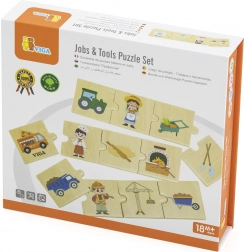 Otkrijte zabavne drvene puzzle VIGA koje djecu od 18 mjeseci uče o svijetu rada. U setu je 24 dijelova, gdje djeca uparuju 6 zanimanja s odgovarajućim alatima i vozilima. Igra razvija finu motoriku, logičko razmišljanje, pažnju i vizualnu koordinaciju. Izrađeno od bukovine i obojeno netoksičnim bojama – sigurno, izdržljivo i idealno kao poklon.