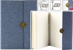 Praktični detalji poput gumice za olovku i tekstilne oznake povećavaju udobnost korištenja. Na prvoj stranici nalazi se prostor za osobne podatke, pa se bilježnica lako identificira. Zahvaljujući formatu A5 (21 × 15 cm) udobno stane u torbicu ili ruksak, a pritom pruža dovoljno mjesta za pisanje.