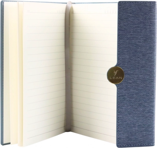 Elegantna uredska bilježnica sa zatvaranjem na magnet i tvrdom koricom štiti vaše bilješke od oštećenja. Nudi 95 krem listova u linijama s prostorom za datum i dane u tjednu, praktičnu gumicu za olovku i tekstilnu oznaku. Kompaktan A5 format idealan je za torbu i posao.