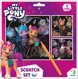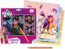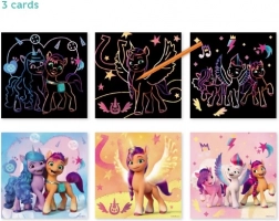Otkrijte radost kreativnog stvaranja s ovim grebalicama koje pozivaju na otkrivanje skrivenih boja. Set sadrži tri različite šarene slike nadahnute My Little Pony te posebno grebalno pero: