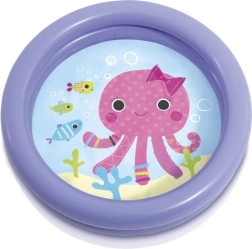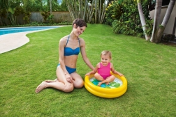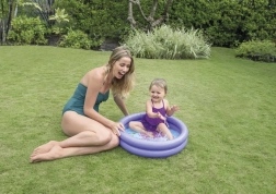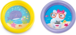 Lagani i kompaktni dječji bazen promjera 61 cm i visine 15 cm idealan je za balkon, terasu i vrt. Ima dvije napuhujuće komore, izrađen je od izdržljivog vinila, a zahvaljujući veselom dizajnu razveselit će djecu od 1 do 3 godine. Jednostavno postavljanje i spremanje, zapremnina cca 17 l pri visini vode 8 cm, uključuje set za popravak.