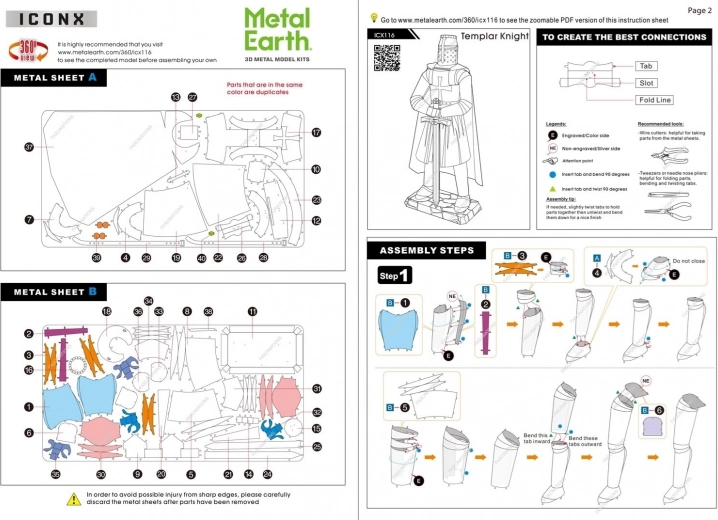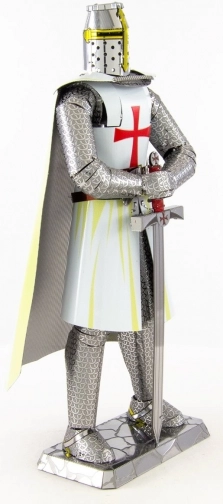 METAL EARTH ICONX – Templarski vitez je kolekcionarski 3D metalni model za sve ljubitelje povijesti i detaljnih minijatura. Od čeličnih pločica dimenzija 21 × 11 cm složit ćete dojmljivu figuricu s laserski graviranim detaljima koji naglašavaju autentičan izgled oklopa i mača.