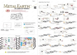 Sklapanje se odvija iz dvije čelične pločice (11 × 11 cm), iz kojih pažljivo vadite dijelove i spajate ih pomoću pametnih kopči s jezičcima. Preporuča se rad s finim kliještima i malim bočnim rezačima. Alat nije uključen u pakiranje.