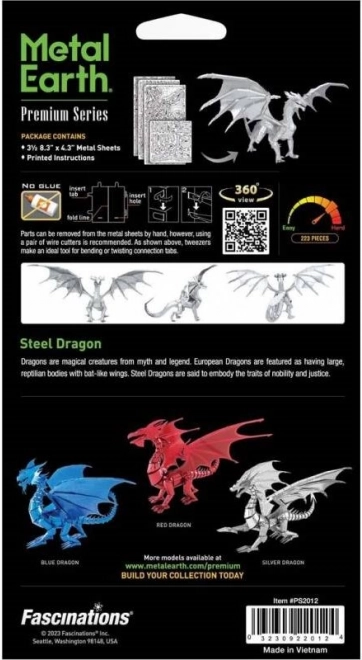 Sastavite vlastitog impresivnog čeličnog zmaja iz METAL EARTH Premium Series. Metalne 3D puzzle s laserskim graviranjem nude detaljan izgled, odličnu dekoraciju za policu ili stol i zabavan izazov za strpljive graditelje. Iz ravnih čeličnih pločica nastaje realističan model s velikim krilima i dugačkim repom koji će oduševiti ljubitelje fantasyja i modelarstva.