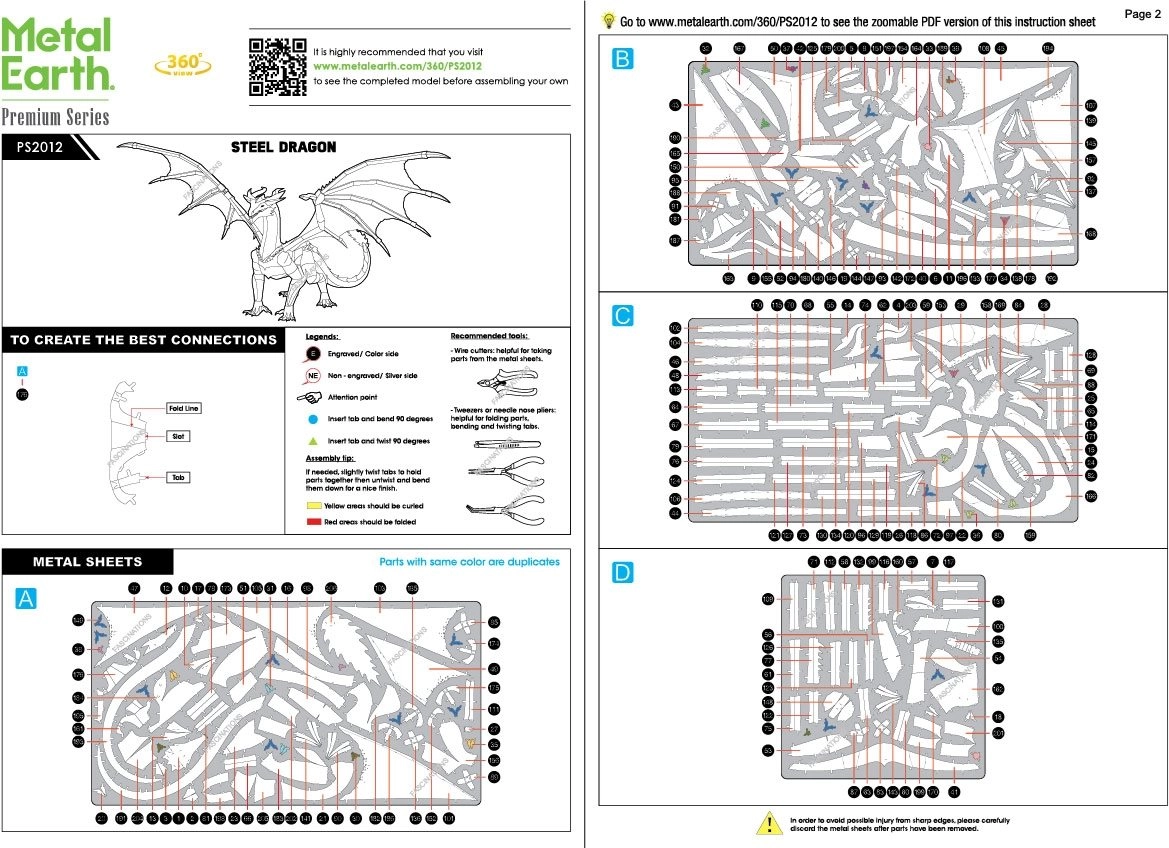 Set funkcionira na principu zaklopki i savijenih jezičaka, bez potrebe za ljepilom. Preporučujemo upotrebu malih kliješta-šiljaca i finih ravnih kliješta (nisu uključeni u pakiranje) za čisto odvajanje dijelova i precizna savijanja. Gotov model idealan je kao dekoracija, dar za ljubitelje fantasyja i kao proširenje kolekcije METAL EARTH.