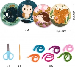 Ovaj set za vezenje brenda Djeco idealan je odabir za prve korake u svijetu ručnih radova. Zahvaljujući unaprijed otisnutim otvorima na čvrstim kartonskim slikama i preglednoj knjižici, djeca lako uče osnove šivanja i kako uz pomoć vlakana stvarati efekt dubine.