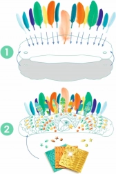 Set DJECO DIY traka Rio nudi zabavan i jednostavan način za djecu da izrade vlastiti svečani traka. Zbog tekstilne podloge je udobna i čvrsta, a odgovara svim veličinama glave. Paket sadrži: