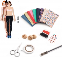 Predstavljamo kreativni set za mlade početnice modne dizajnerice, koji donosi jedinstven pristup stvaranju mode. Ovaj set omogućuje lako sastavljanje krojeva i dijelova bez potrebe za šivanjem.