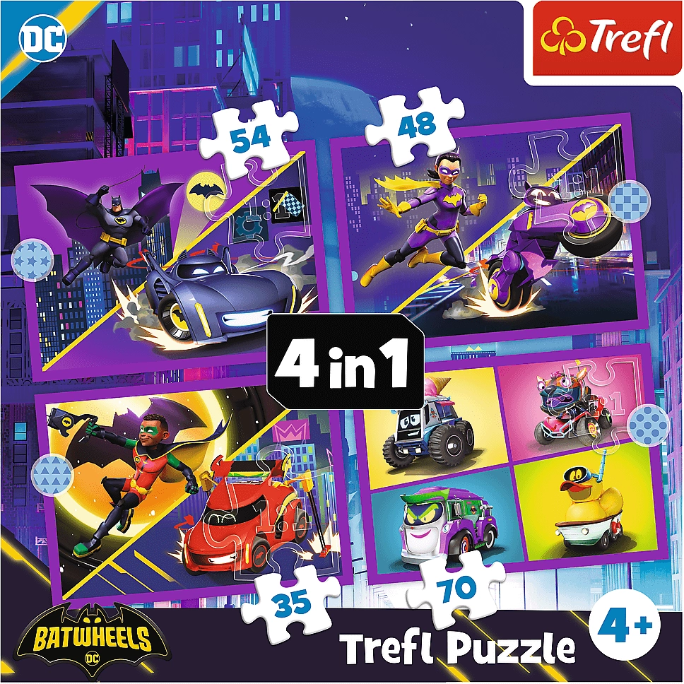 Otkrijte akcijski svijet herojskih vozila s puzzle setom Batwheels. Pakiranje sadrži 4 neovisne puzzle koje će djeca slagati postupno, od jednostavnijih do zahtjevnijih. Sjajan izbor za razvoj strpljenja, koncentracije i fine motorike.