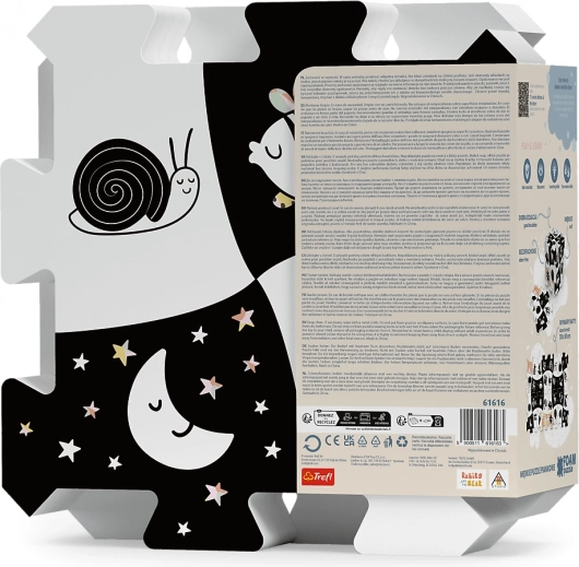 Pjenaste puzzle TREFL s likovima Treflíka izvrsno su rješenje za sigurnu i udobnu igru. Poseban materijal sličan debeloj podlozi za jogu ili višeslojnom mirelonu osigurava odlično prigušenje udaraca i ugodan oslonac. Crno-bijele ilustracije djeluju smirujuće i potiču koncentraciju.
