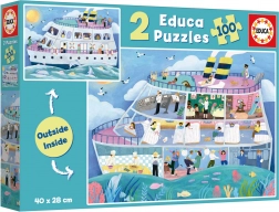 Par kvalitetnih slagalica brenda EDUCA donosi razigrane motive izletničkog broda izvana i iznutra. Svaka slagalica ima 100 čvrstih dijelova koji precizno pristaju i stvaraju sliku dimenzija približno 40 × 28 cm. Idealno za djecu koja vole otkrivati detalje i priče skrivene u slikama.
