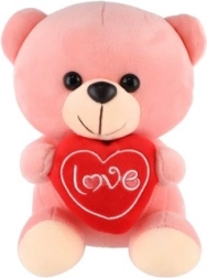 Ovaj ružičasti medvjedić drži crveno srčeko s natpisom “love” i odmah osvaja srca malih i velikih. Mekani pliš i pažljivo vezeni detalji čine ga sigurnim i ugodnim pratiteljem za svakodnevno maženje.