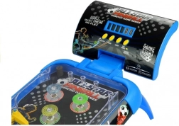 Dizajn igračke flipper izgleda kao umanjena verzija klasičnog igraćeg automata. Radna ploha povezana je s dvjema nogama i brojačem rezultata, čiji položaj igrač može prilagoditi svojim potrebama. Zahvaljujući nogama, ploča je postavljena pod kutom koji omogućuje sjajnu zabavu, kao i izbacivanje kuglice prema gore. Velika prednost igračke je njezin dizajn ukrašen nogometnim motivima. Plavi omotač igraće ploče kombiniran je s tamnom pozadinom koja nakon uključivanja šarenih svjetala izgleda senzacionalno. Nakon napajanja igre baterijama, pritisnite gumb ON/OFF, a zatim pokraj njega gumb START. Želite li dodati zvukove uz uzbuđenje igre, jednostavno pritisnite gumb za glazbu. Posljednji je gumb s oznakom TOP SCORE, čijim se pritiskom prikazuje najviši postignuti rezultat. Vjerujemo da vas ova funkcija može motivirati da pri sljedećoj igri date još više od sebe. Po potrebi se ovaj brojač može resetirati i igra započeti ispočetka.