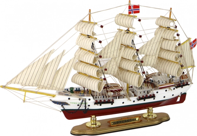 Ovaj model kolekcionarskog broda *Sorlandet* predstavlja savršenu repliku tradicionalnog jedrenjaka. Drvena baza s imenom broda pojačava dojam autentičnosti, dok norveška zastava na vrhu naglašava podrijetlo broda.