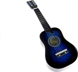 Drvena dječja gitara od 60 cm u plavoj boji donosi pravo sviranje za najmlađe. Nudi 6 žica, mogućnost štimanja pomoću mehanika, a dio pakiranja je i trzalica. Lakirano drvo i pažljiva izrada osiguravaju realan zvuk. Prikladno od 3 godine, certifikacija CE.