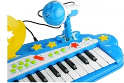 Zabavna dječja klavijatura s 37 tipki, odvojivim mikrofonom i ulazom za MP3 donosi sjajnu glazbenu zabavu. Nudi snimanje, demo skladbe, odabir glazbenih stilova i instrumenata, svjetlosne efekte te podešavanje tempa i glasnoće. Idealno za male glazbenike od 3 godine.