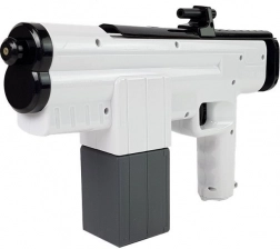 Ovaj stilski vodeni pištolj u crno-bijeloj kombinaciji boja idealan je za dvoboje u vrtu, na plaži ili uz bazen. Zahvaljujući kompaktnim dimenzijama iznimno je upravljiv i precizan, pa ga bez problema mogu koristiti i mlađa djeca. Dovoljno je napuniti izvadivi spremnik, pritisnuti okidač i pomoću pumpe stvoriti snažan mlaz vode.