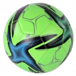Nogometna lopta veličine 5 dizajnirana je za ugodnu igru na terenu i na treningu. Izrazita zelena boja s modernim grafičkim elementima u ljubičastoj i plavoj osigurava izvrsnu vidljivost i lako praćenje leta tijekom igre. Dizajn s trokutima, linijama i apstraktnim motivima daje lopti moderan izgled i pomaže igračima bolje percipirati rotaciju i kretanje.