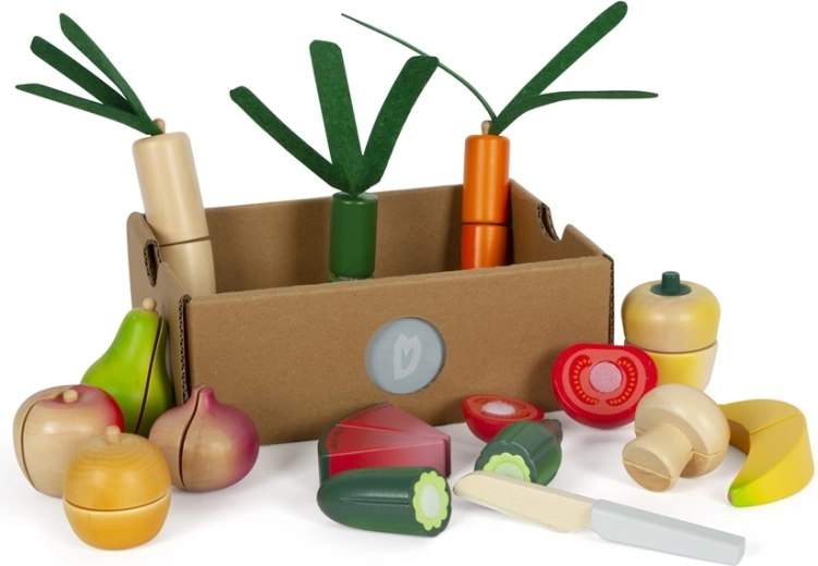 Set za rezanje voća i povrća Fresh pruža djeci zabavu i istodobno učenje. Uz drveni nož djeca mogu sigurno „rezati“ pojedine komade, što razvija finu motoriku i koordinaciju ruke i oka.