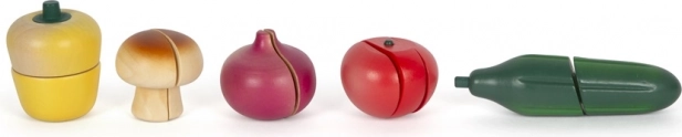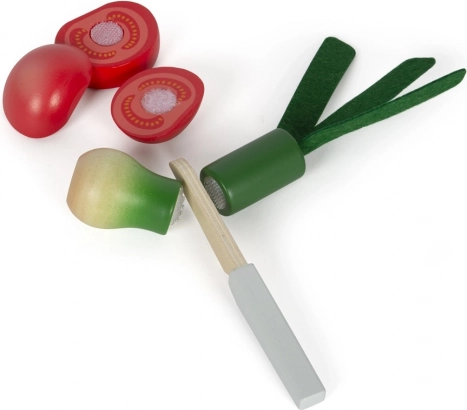 Namirnice su spojene čičak-trakom, što omogućuje njihovo „rezanje“ priloženim drvenim nožem. Djeca se tako mogu igrati kuhanja kao i odrasli.