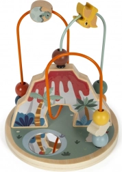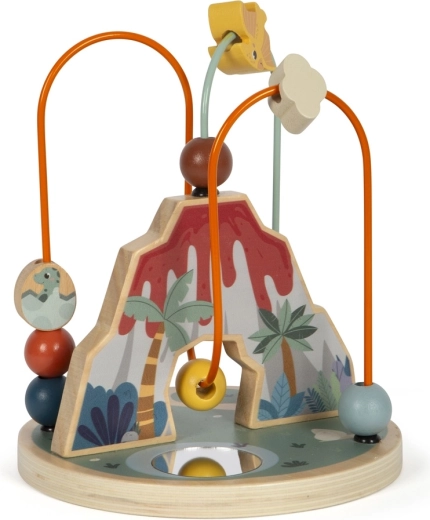Ovaj labirint s perlicama s motivom dinosaura predstavlja idealnu igračku za razvoj djece. Uči ih koordinaciji ruka-oko i stimulaciji kreativnosti, dok privlači svojom originalnom formom vulkana. Igračka sadrži dvije obojene petlje s raznim perlicama i centralno zrcalo smješteno na bazi, tako da sve može biti viđeno iz drugačijeg kuta.