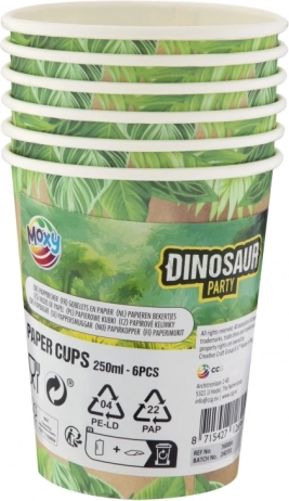 Uljepšajte dječju proslavu stilskim posluživanjem: papirnate čaše s dinosaurovski motivom imaju volumen 250 ml, pakiranje 6 kom te su jednokratne i lako reciklabilne.