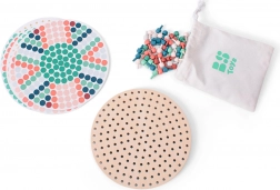 Drvena ploča, čvrsti čavlići i pamučna torba za prenošenje i spremanje. Igra pruža mnoge sate kreativne zabave.