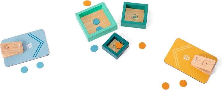 Zabavna i napeta društvena igra za 2 igrača od 6 godina naviše, u kojoj odlučuju precizno ciljanje, brza reakcija i taktika. Pomoću lansirne rampe izbacujete žetone na tri mete različitih veličina – što je manja meta, to više bodova. Neki žetoni imaju dvostruku vrijednost, pa možete pametno kombinirati i povećavati rezultat. Odlično za razvoj fine motorike i koordinacije ruka–oko.