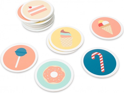 Koliko parova ukusnih slastica možete pronaći? Ovo memo s motivima poslastica donosi šarene ilustracije lizalica, sladoleda, krafni i drugih dobrota. Djeca tijekom igre nenametljivo uvježbavaju vizualno pamćenje, koordinaciju oko–ruka i brzo odlučivanje.