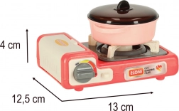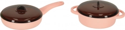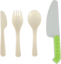 Sadrži širok raspon pribora kao što su pribor za jelo, tanjuri, tave i mnogo više za kreativnu igru.