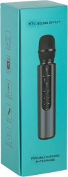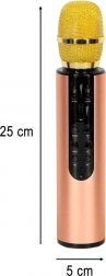 Stilski karaoke mikrofon spaja prijenosni zvučnik i mikrofon u jednom. Bežična Bluetooth tehnologija s dometom do 10 m omogućuje praktično povezivanje s telefonom ili tabletom, dok utor za memorijsku karticu i AUX ulaz proširuju mogućnosti reprodukcije. Upravljačke tipke na kućištu mikrofona omogućuju brzi odabir pjesama, podešavanje glasnoće i postavljanje odjeka.